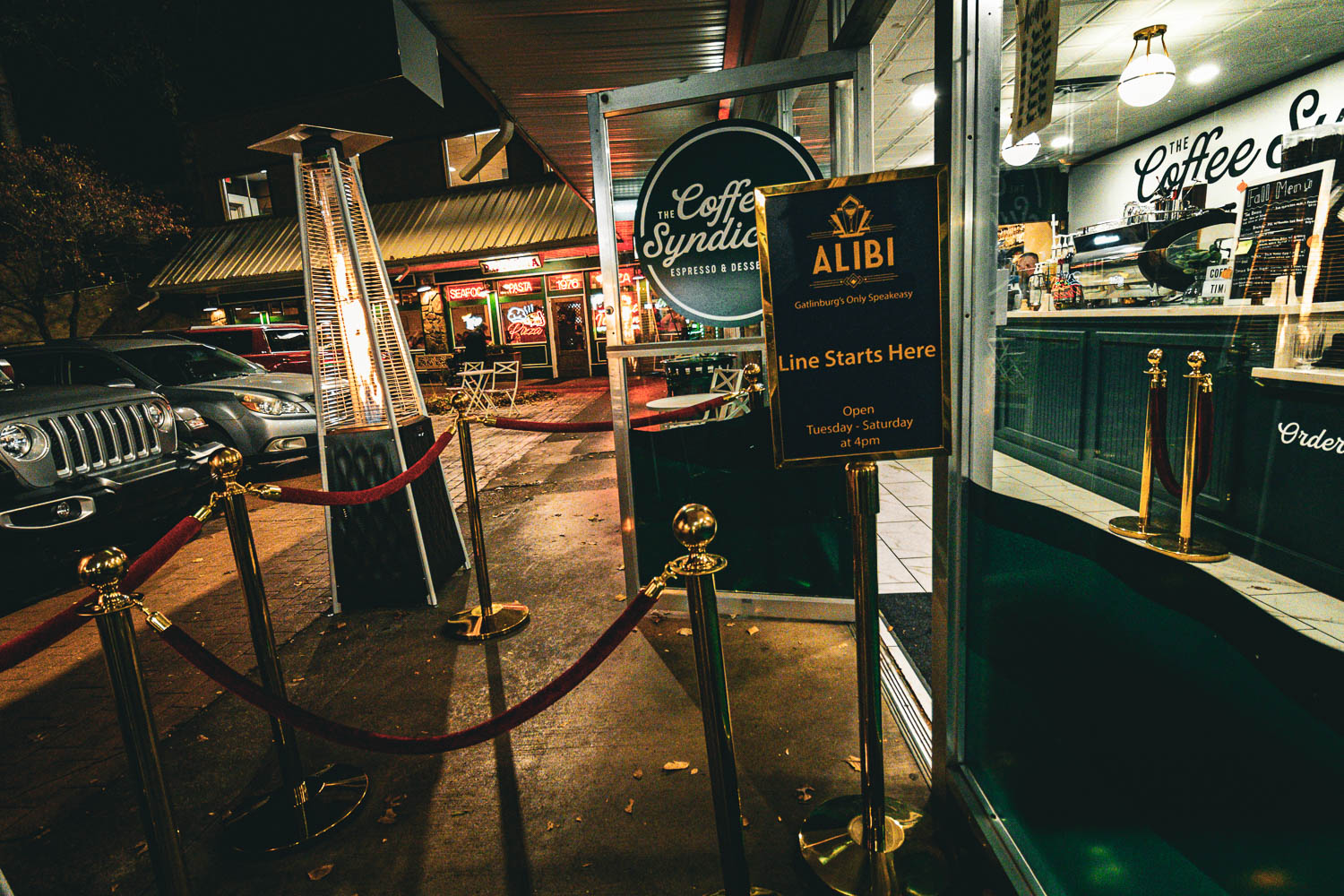 The evening began innocuously: we met up just after sundown and wandered into The Coffee Syndicate, the café on the front of the building. No neon sign pointing to the fun, nothing but the aroma of espresso and dessert. Then, a barista quietly directed us toward a deceptively ordinary door – what might have looked like a walk-in cooler – but beyond it lay a very different world.